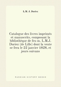 Купить книгу по требованию автора L.M. J. Duriez - «Catalogue des livres imprimés et manuscrits, composant la bibliothèque de feu m. L.M.J. Duriez (de Lille) dont la vente se fera le 22 janvier 1828, et jours suivans» за 2 608,86 в интернет-магазине книг «МОСКВА». Доставка по всей России!