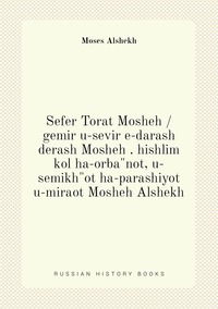 Аннотация к книге "Sefer Torat Mosheh /gemir u-sevir e-darash derash Mosheh . hishlim kol ha-orba"not, u-semikh"ot ha-parashiyot u-miraot Mosheh Alshekh" Moses Alshekh:Эта книга — репринт оригинального издания (издательство "arsha : ha-Aim Lein Epshain", 1921 год), созданный на основе электронной копии высокого разрешения, которую очистили и обработали вручную, сохранив структуру и орфографию оригинального издания. Редкие, забытые и малоизвестные книги, изданные с петровских времен до наших дней, вновь доступны в виде печатных книг.