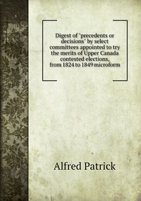 Купить книгу по требованию автора Alfred Patrick - «Digest of 'precedents or decisions' by select committees appointed to try the merits of Upper Canada contested elections, from 1824 to 1849 microform» за 2 293,86 в интернет-магазине книг «МОСКВА». Доставка по всей России!